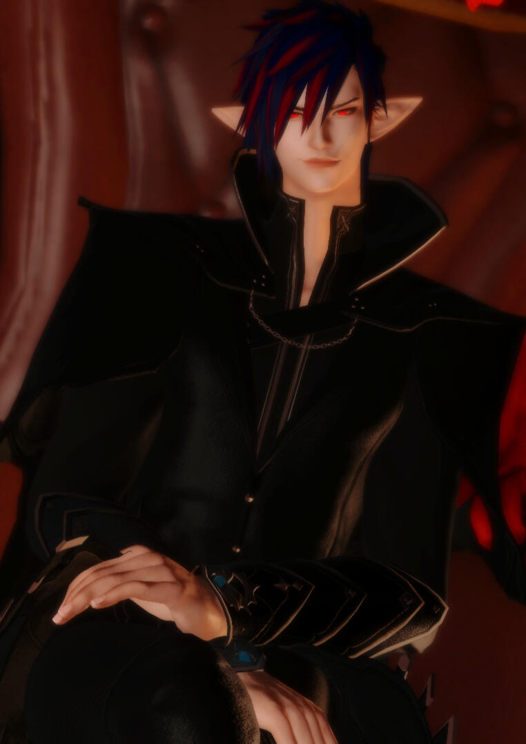 Dislike: Brightness, Having nothing to do, Weakness, Bigheads, Popularity.Backstory/Lore: Borned from an heretic crazy women messing too much with darkness, Zayn saw the day not only as an Elezen, but also as a Voidsent. Her mother, having fun invocating Voidsent played too much with fire while pregnant and got possessed by a Voidsent, consuming her in darkness and turning her baby into a Voidsent himself. Zayn grew up rejected, and was seen as a menace for humanity at a point that he had to leave Ishgard for a while. Being in a hate against his parents, Zayn then decided to change his last night from Veauroix, symbol of traitors and heresy to Midnight, symbol of the darkness, void and night. While out of Ishgard as a teen, Zayn had a big reflection. He was a dragoon but wasn't feeling great about it, and was wondering how he could get rid of that lance. Then, a voidsent appeared in front of him proposing a pact. If Zayn would agree to make all the Voidsents his unique family, then the voidsent would give him the power of darkness and so, the power of the reaper. Zayn, without hesitation agreed with that and thats when he became the reaper he is today. Time passed, his family completely renied and forgotten, Zayn was exploring the world in search of death to work and send the souls to the sea of starts.....or for the interesting cases keeping the souls for himself to have some ghost puppets to play with in fights. Zayn has visite back Ishgard, but never talked to his family again and today, he don't even want to hear about them or hear their lastname in his name anymore.